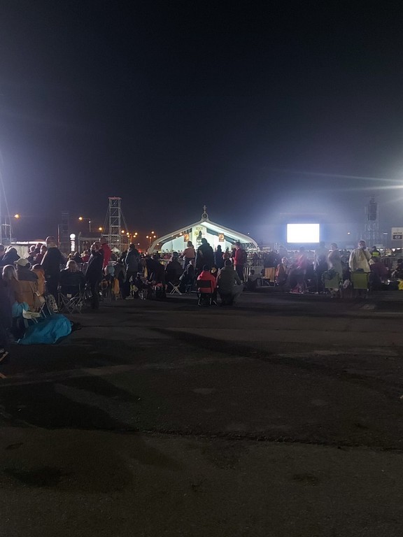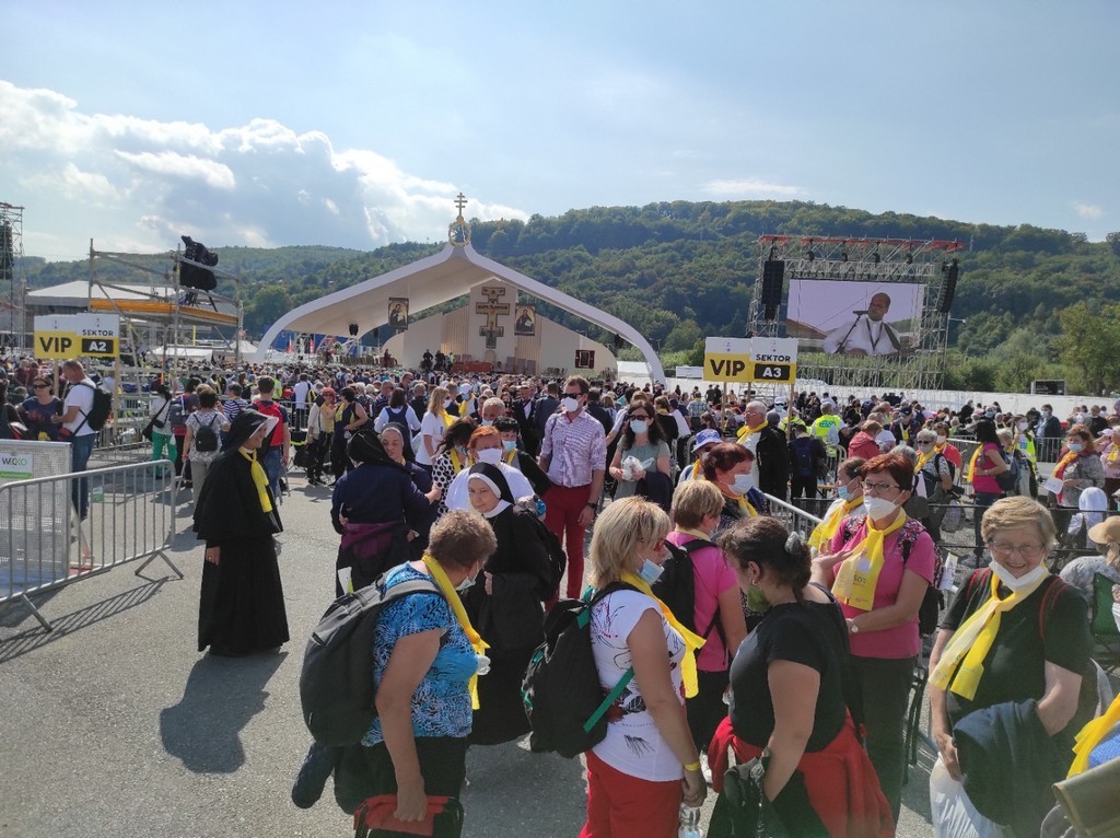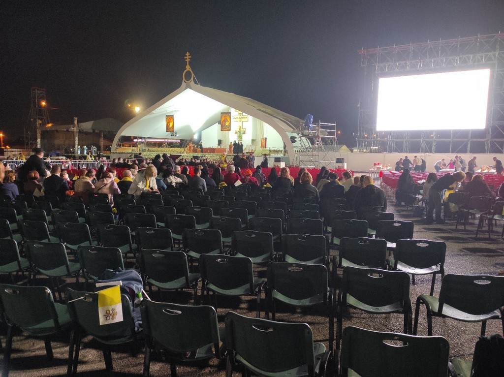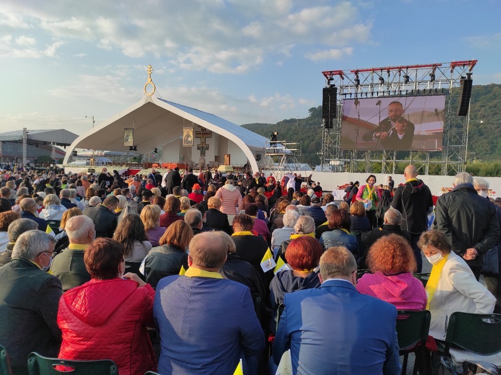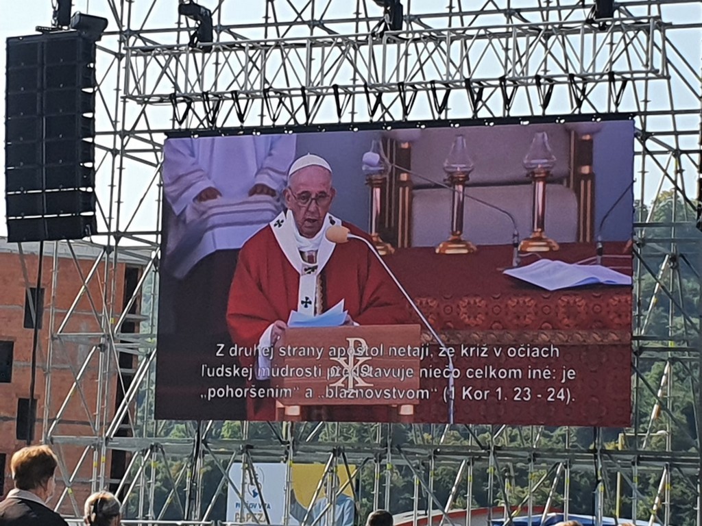 Farníci sa pridali k programu modlitbou utierne sviatku Povýšenia úctyhodného a životodarného kríža nad celým svetom. Priam symbolicky sa slávenie tohto sviatku skutočne vysielalo do celého sveta. Bohatý a pestrý duchovno-kultúrny program skrátil čakanie na príchod hlavy katolíckej Cirkvi. V príhovore v talianskom jazyku pápež František poukázal na sv. apoštola a evanjelistu Jána, ktorý videl v kríži Božie dielo, spoznal v ukrižovanom Kristovi Božiu slávu a vydal o tom svedectvo. Ježiš Kristus si vybral cestu kríža, aby nebol na zemi žiadny človek až taký zúfalý, aby sa s Ním nemohol stretnúť.