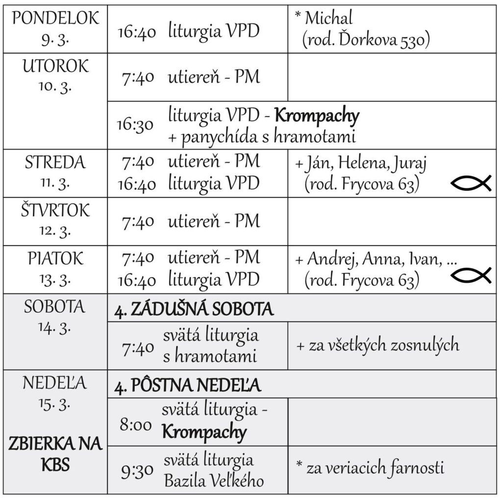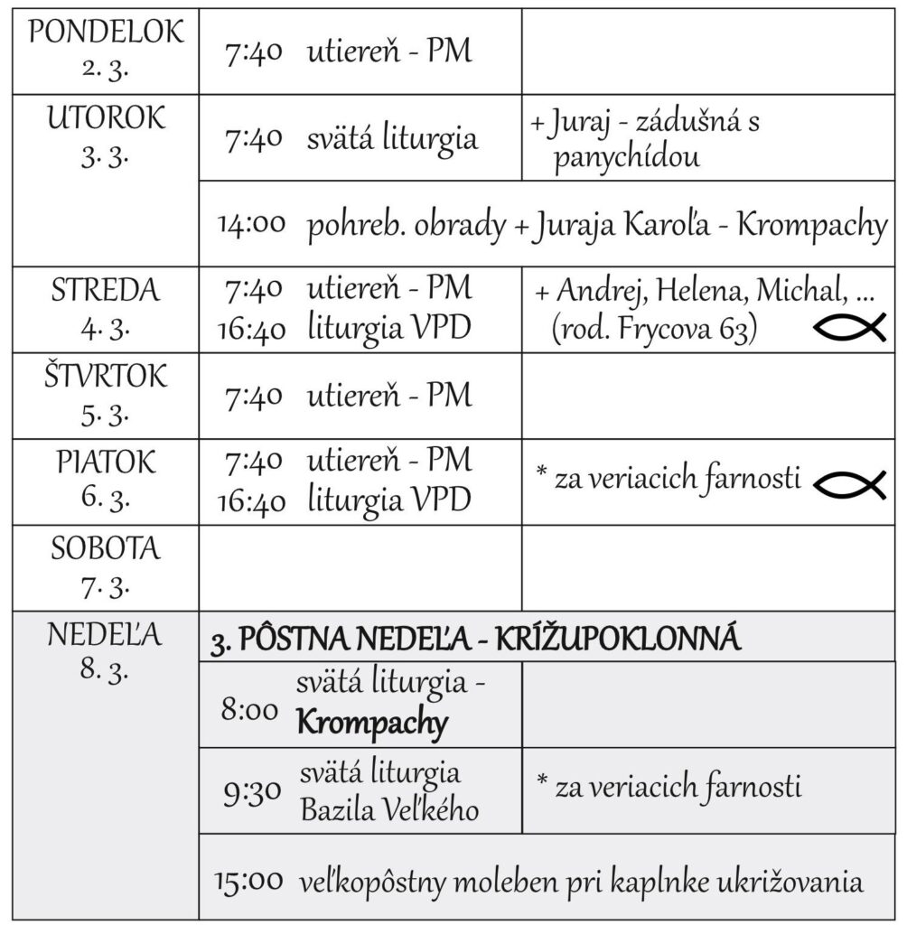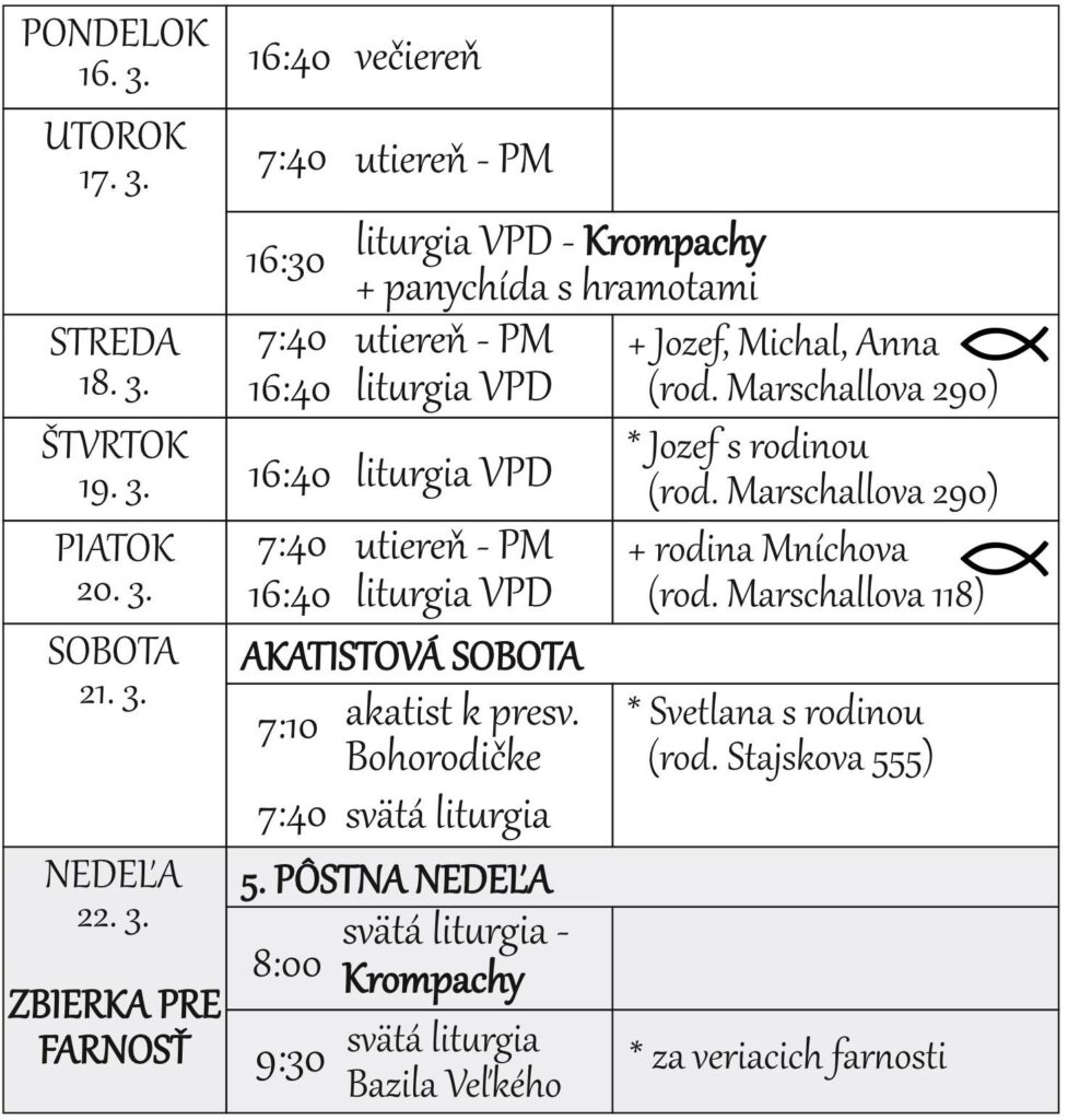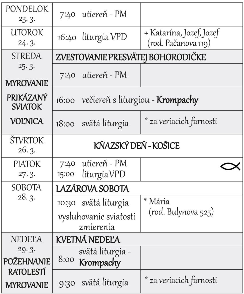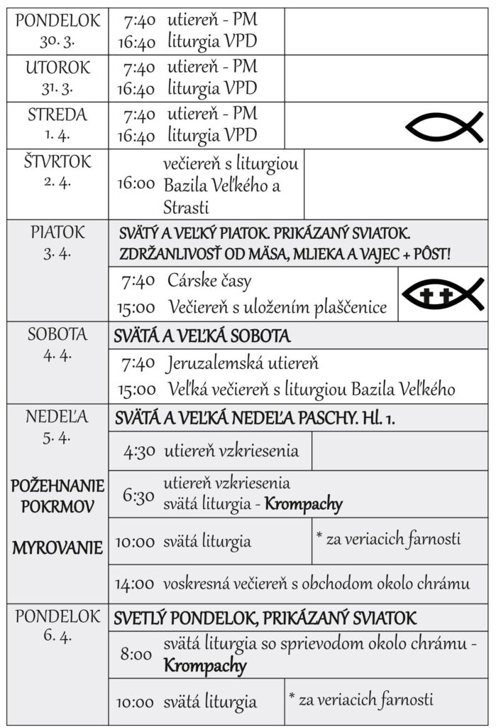 Liturgický program 30.3.2026 – 5.4.2026